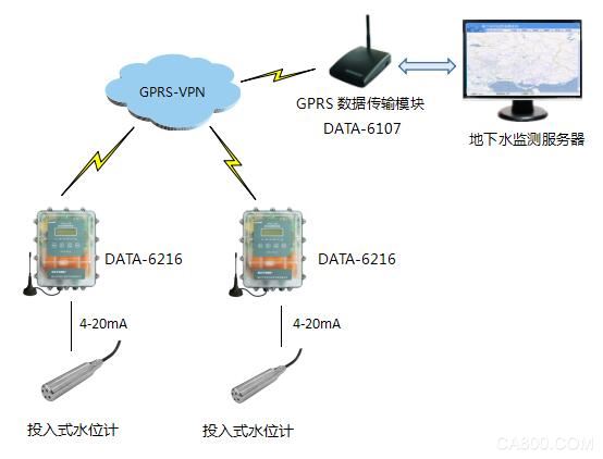 省地下水监测中心具备可上外网的固定IP, 系统采用GPRS+INTERNET的公网专线组网模式。